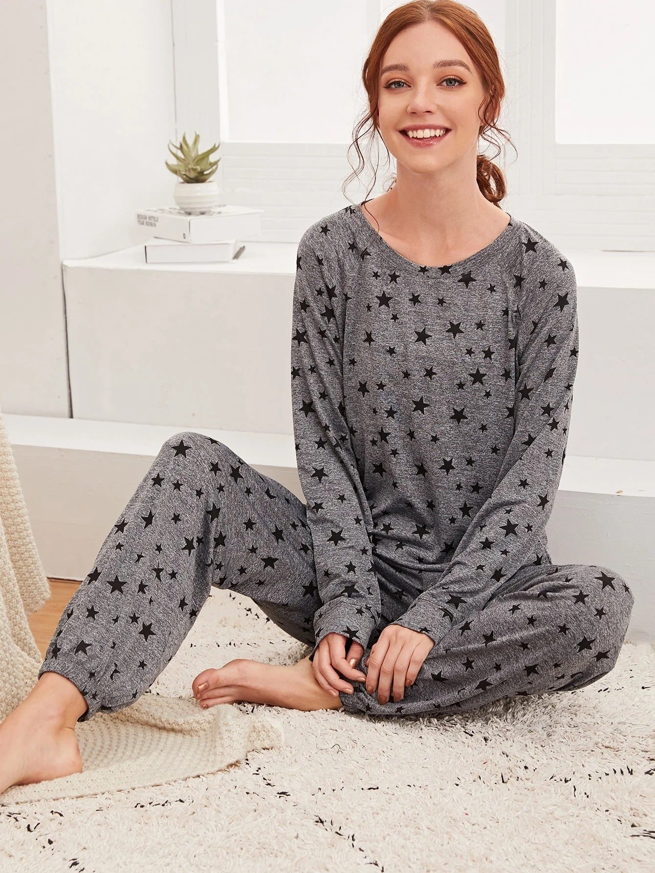 Charcoal Star Printed Night Suit