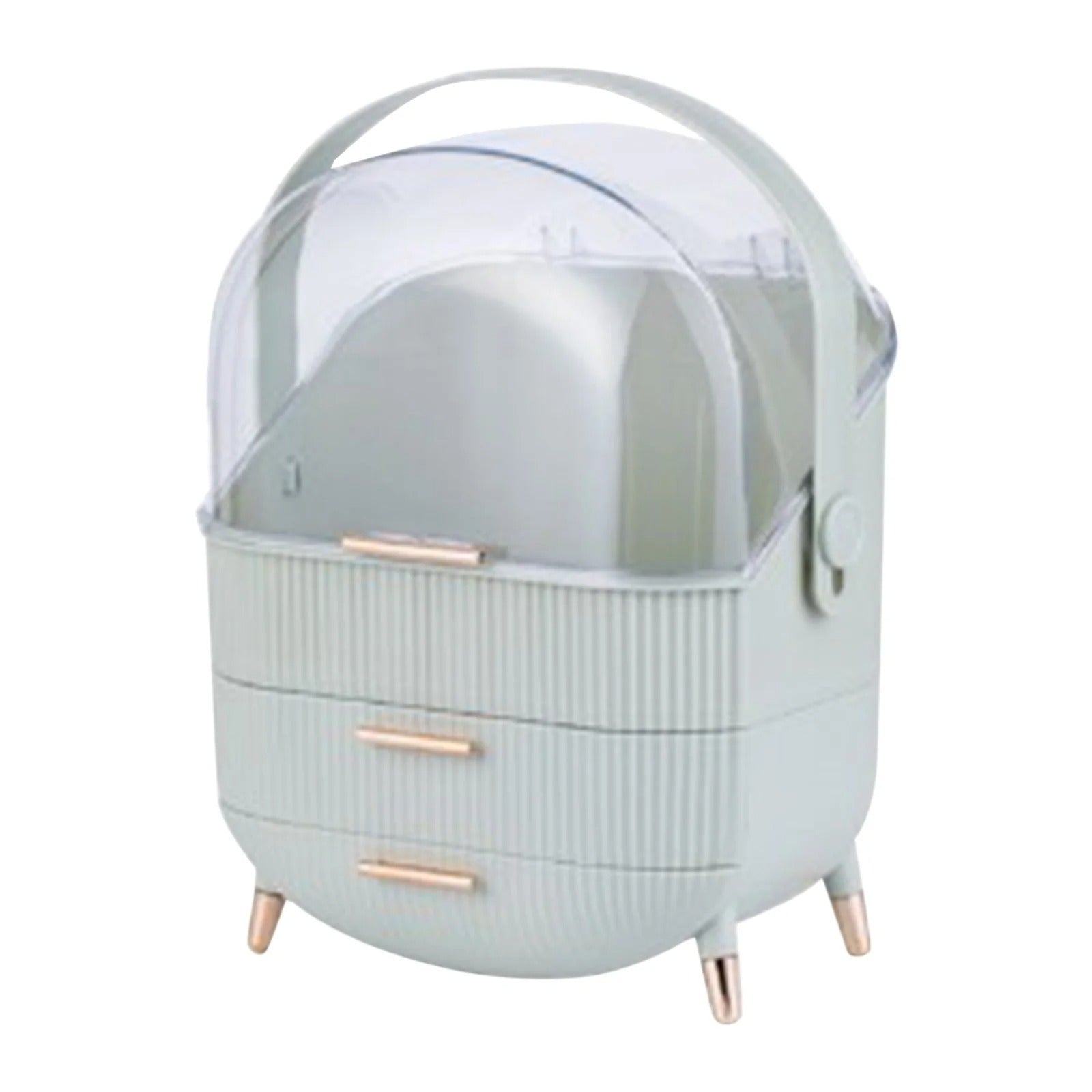 Keep your beauty essentials neatly organized with this stylish and functional Cosmetic Storage Box. Designed with a transparent flip-top lid, it provides dustproof storage for your skincare and makeup items. The smooth handle makes it easy to carry, while the two spacious drawers allow for clutter-free organization of smaller items.